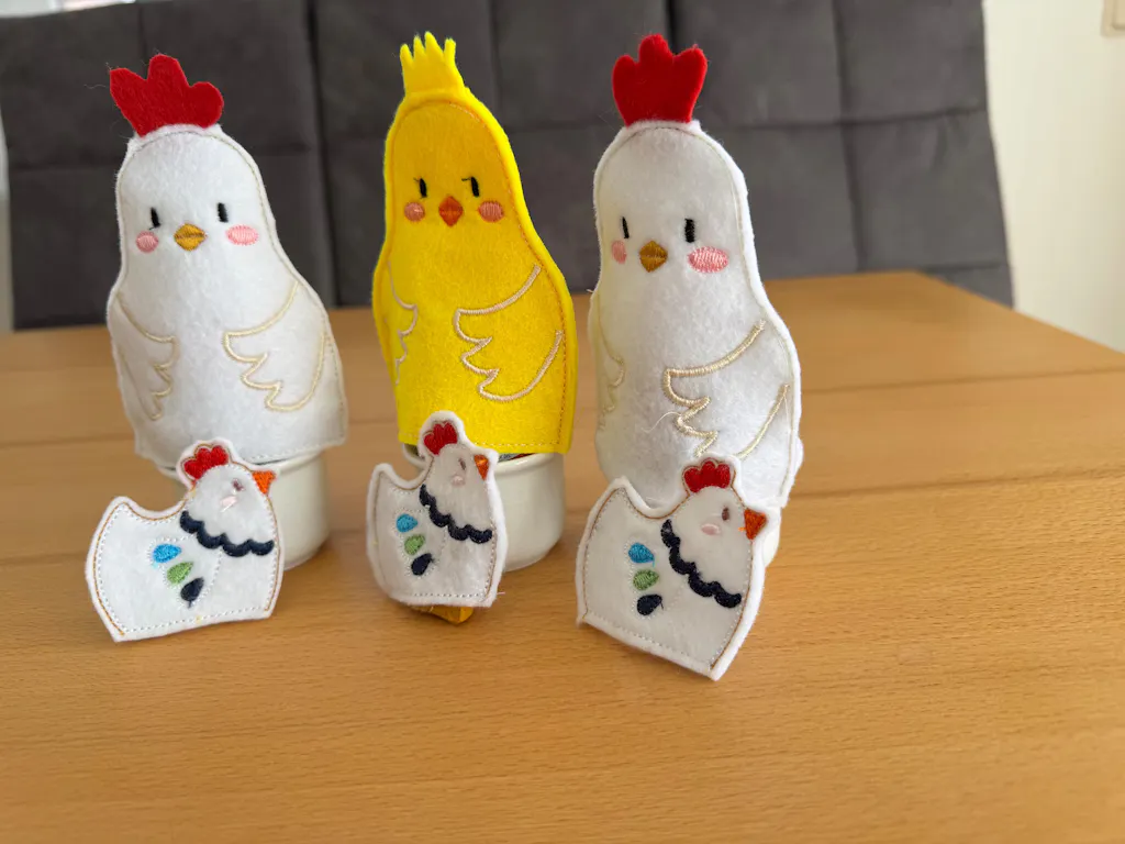 ITH Stickdatei Eierwärmer Huhn - zwei Varianten - Plüsch und Filz