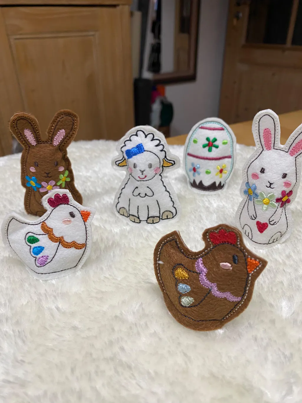 Kleines Osterei aus Stickfilz mit Platz für ein Schokoladen-Ei