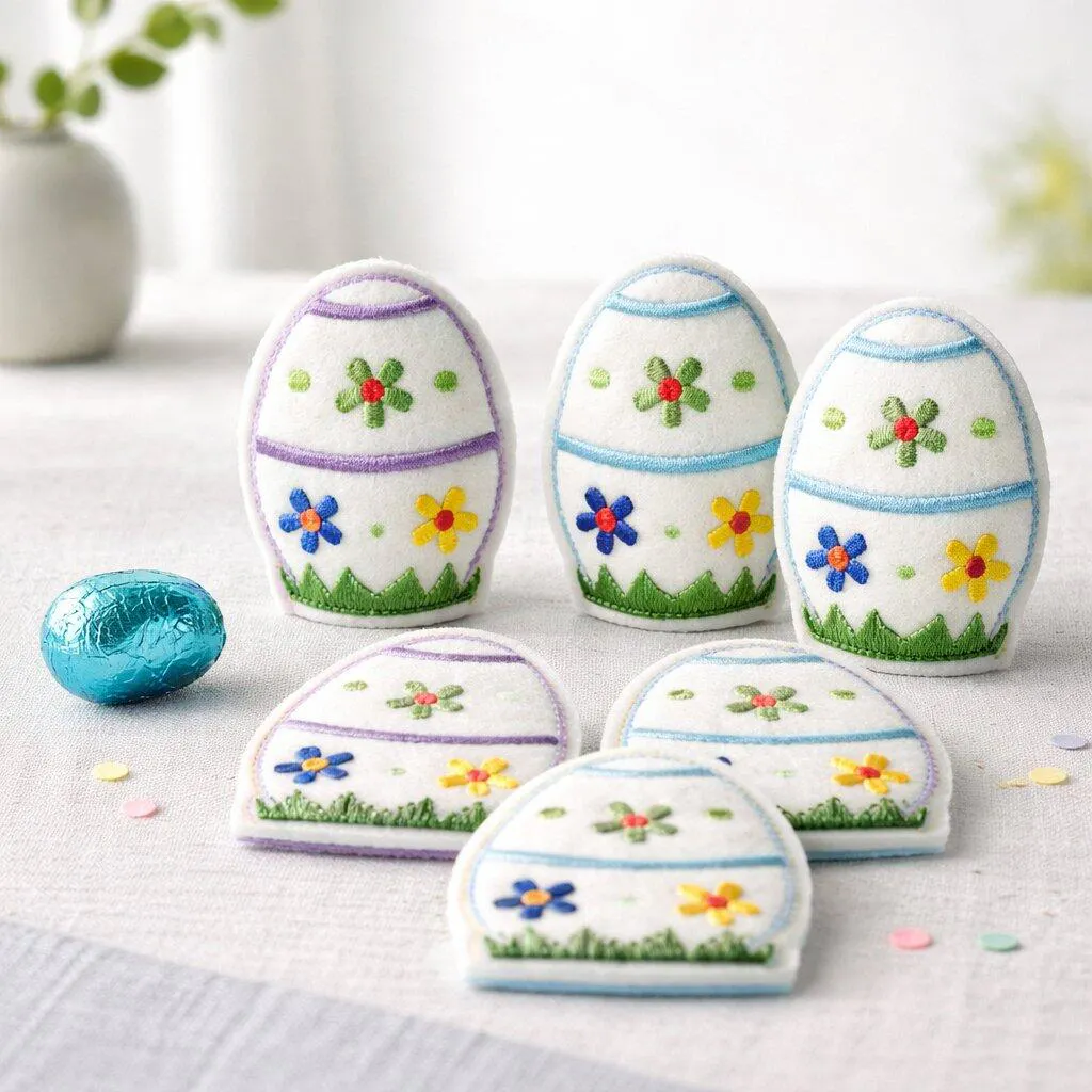 Dieses ITH-Osterei aus Stickfilz ist eine schnelle und hübsche Idee für selbst gemachte Ostergeschenke. Das Ei besitzt eine kleine Tasche, in der ein Schokoladen-Ei Platz findet. So entsteht eine liebevolle Osterdekoration, die sich perfekt für den Ostertisch, das Osternest oder als kleine Aufmerksamkeit eignet.