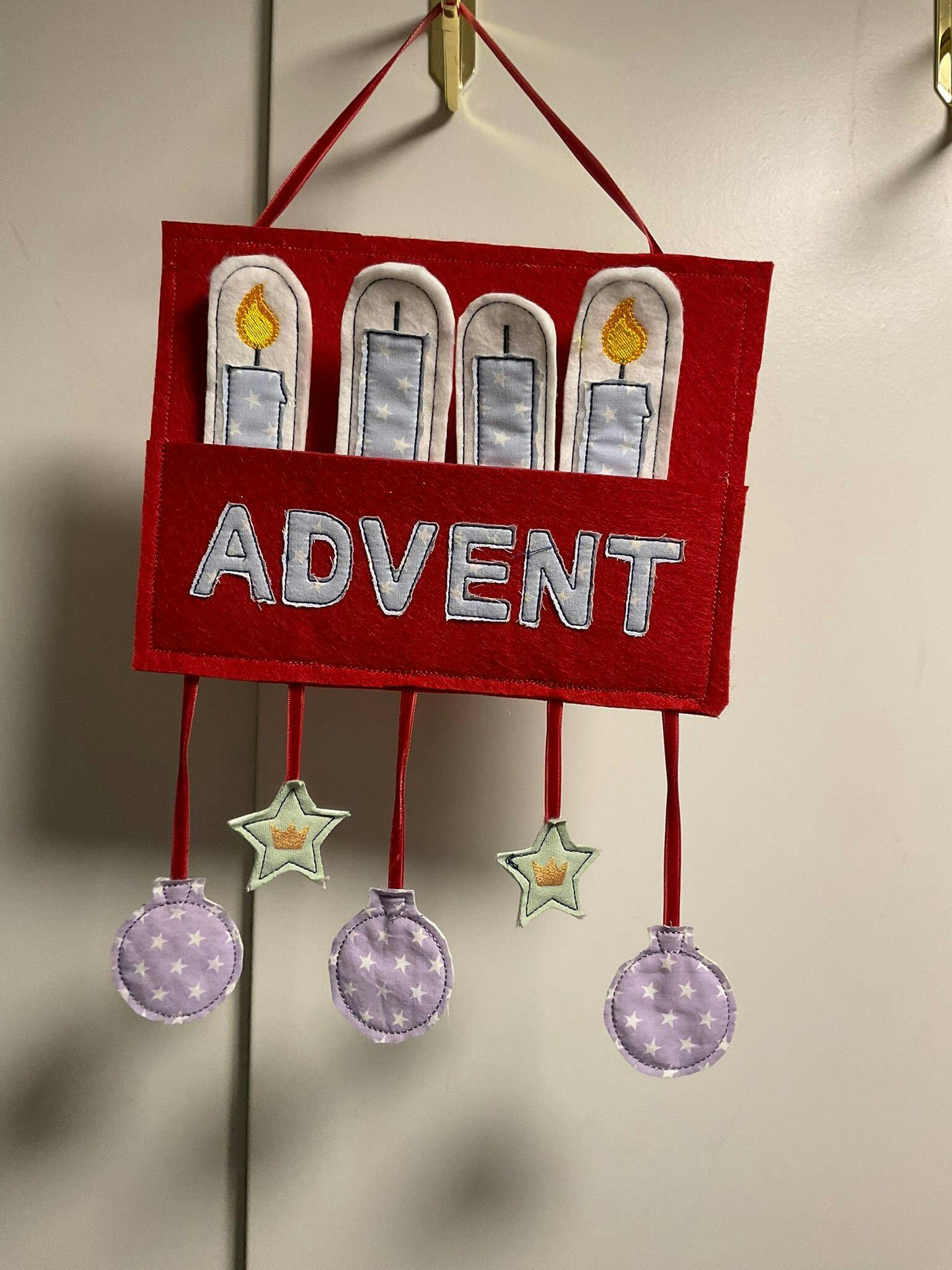 Der Adventskranz ist eine von drei Dateien die ich bei Sticktier erwerben habe. Den Adventskranz und den zu befallenden Tannenbaum konnte ich schon umsetzen. Beide bestechen durch sehr ausführliche, leicht zu befolgende Instruktionen. Die Dateien sind wirklich zu empfehlen! Es ist alles dabei was man braucht. Stoffmenge, Ablauf. Mega!