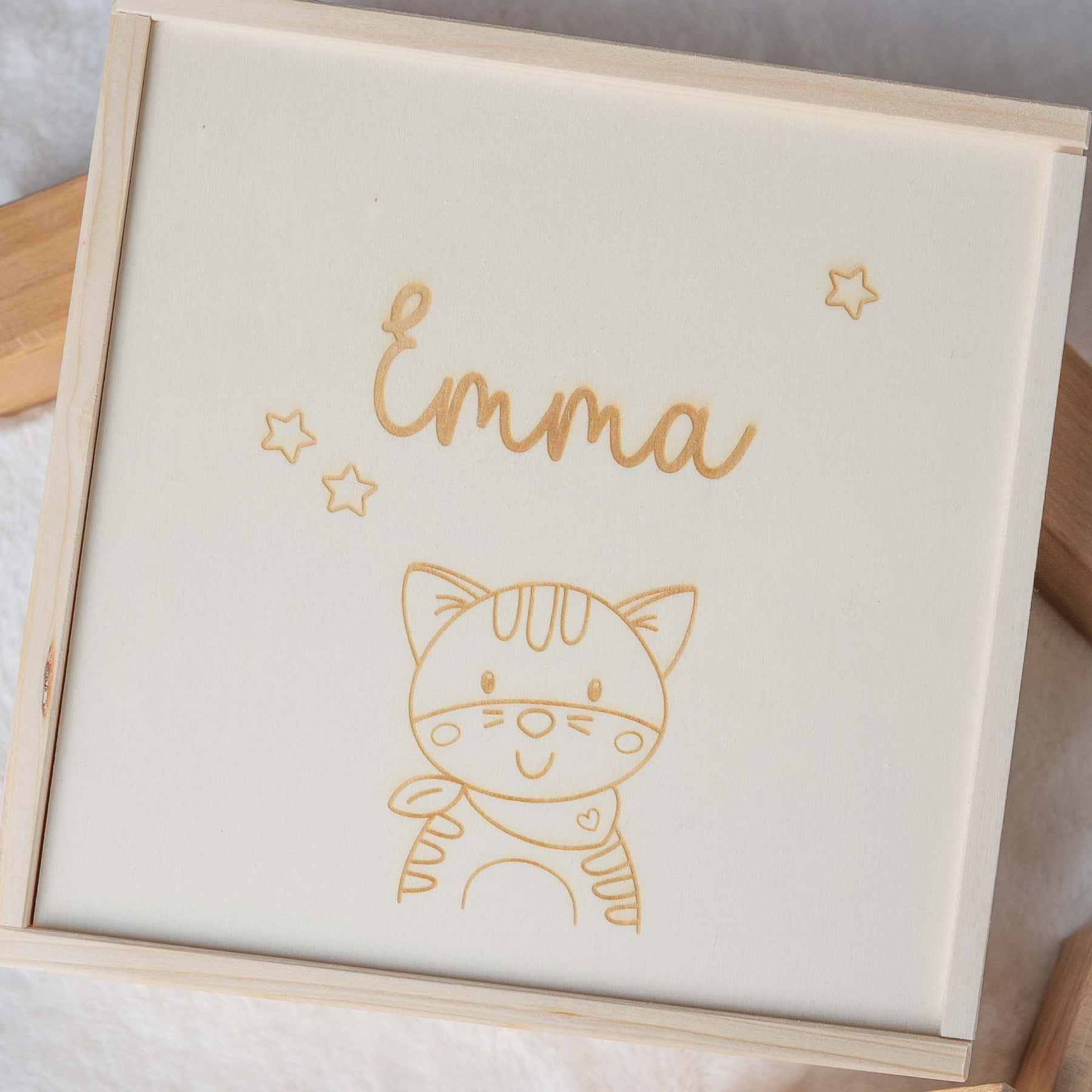 Zu den gestickten Schmusetüchern, Rasselgreiflingen oder Waschlappen kannst du jetzt passende gelaserte Geschenkboxen, Deko, Schildchen oder kleine Geschenke herstellen.