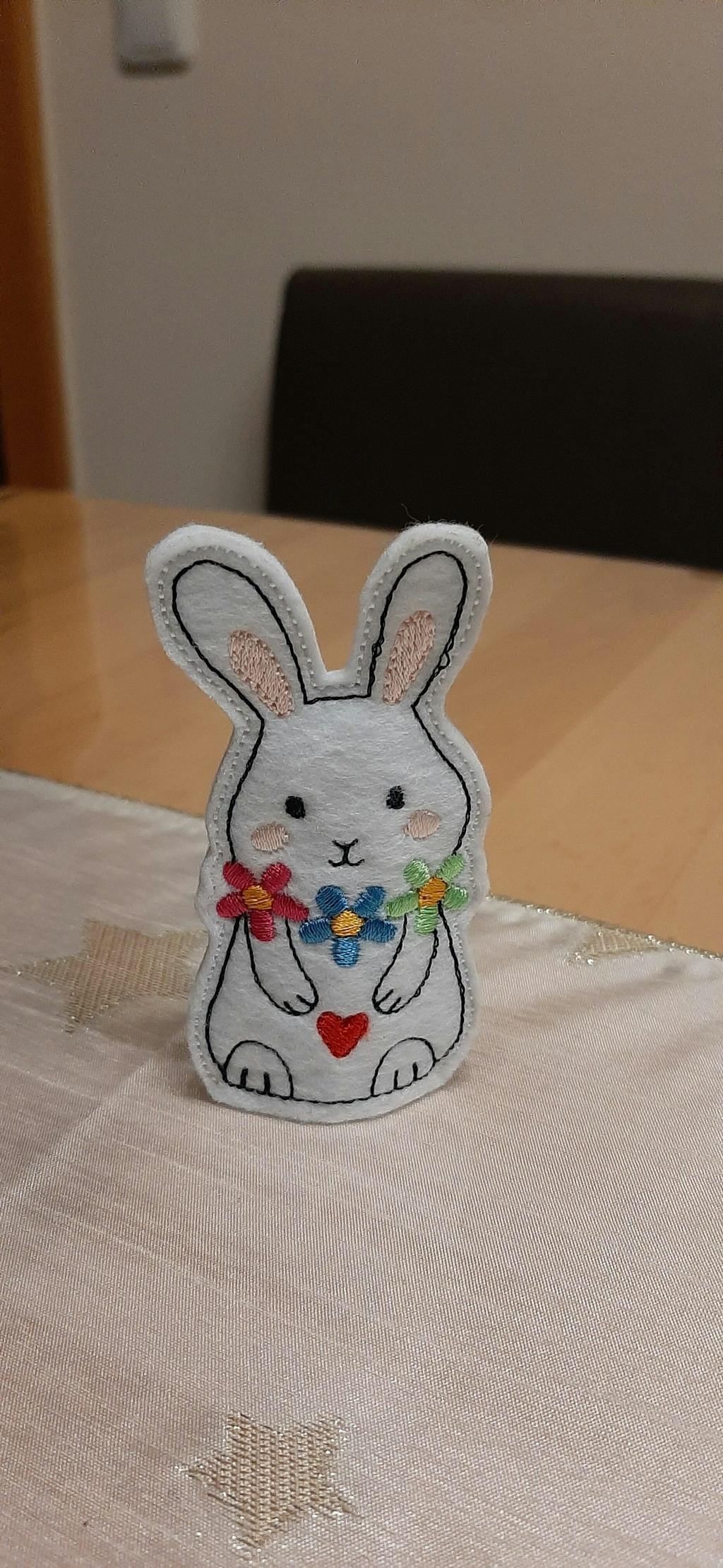 Kleiner Osterhase aus Stickfilz mit Platz für ein Schokoladen-Ei.