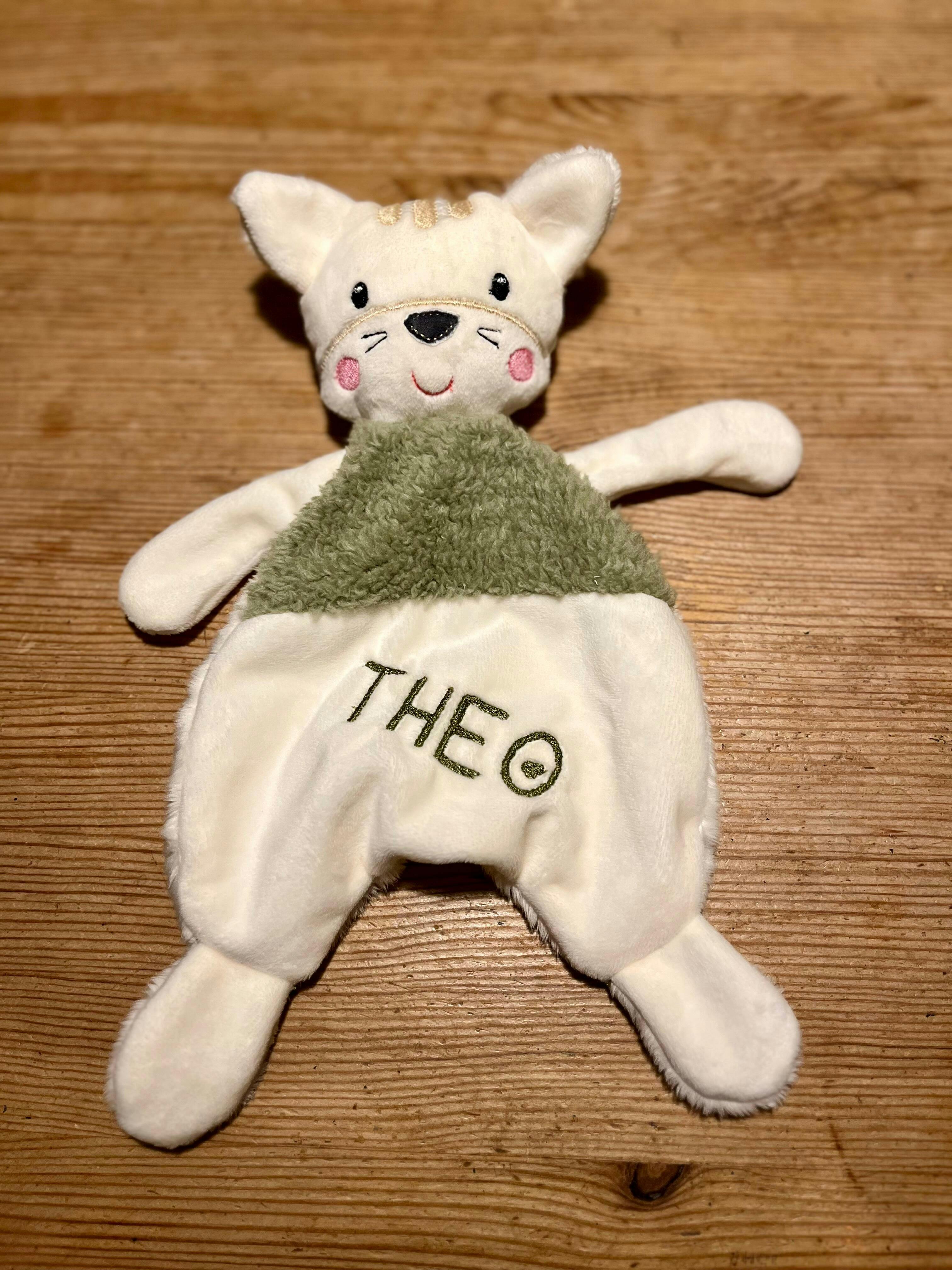 Das Schmusetuch kann, indem man es bestickt, ganz einfach personalisiert werden.
